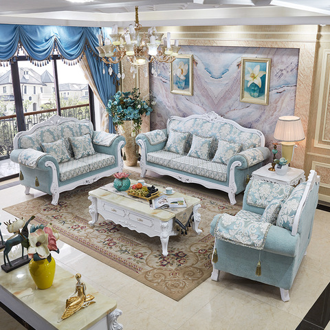 Moderne europäische Luxus antike Wohnzimmer möbel Home Sofa Set Neue Französisch geschnitzte Massivholz rahmen Stoff 1 2 3-Sitzer Sofa